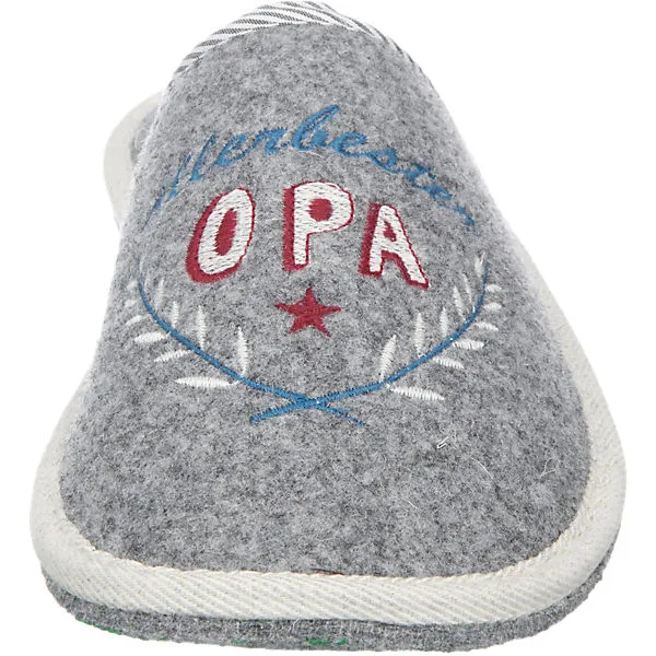 Gemütliche Adelheid Hausschuhe mit witziger „Allerbester Opa“ Stickerei auf der Vorderkappe.