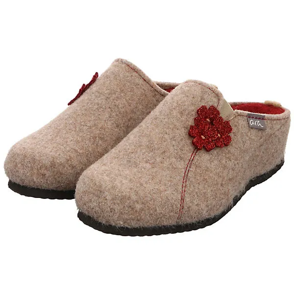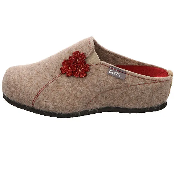 Gefertigt aus hochwertigem Wollfilz sind die Hausschuhe von ara die besten Begleiter für eine gemütliche Zeit daheim wenn es draußen ungemütlich wird. Ein innenliegende Keilsohle sorgt dabei für einen angenehmen Stand und der Wollfilz für warme Füße. Dieses Modell punktet mit einem hellen Beigeton und einer hübschen Blütenapplikation.