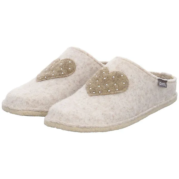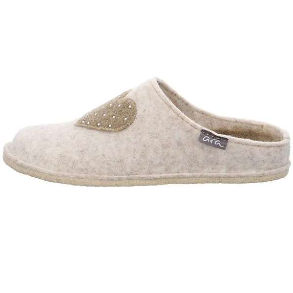 Gefertigt aus hochwertigem Wollfilz sind die Hausschuhe von ara die besten Begleiter für eine gemütliche Zeit daheim wenn es draußen ungemütlich wird. Ein angenehmes Fußbett sorgt dabei für einen angenehmen Stand und der Wollfilz für warme Füße. Dieses Modell punktet mit einem schönen Beigton und einer hübschen Herzapplikation.