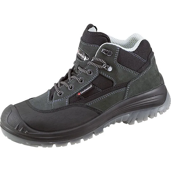 Sicherheitsklasse: EN ISO 20345:2011 S1P SRC, Zehenschutz: Kunststoffkappe, Durchtrittschutz: ENIGMA T-System – Kunststoffzwischensohle von Texon, Obermaterial: Leder / Nylon, Farbe: schwarz / grau, Innenfutter: Textil, Sohle: PU / PU transparent, bedingt öl-, benzin- und sĂ€urebestĂ€ndig, antistatisch, Shockabsorber im Absatz, Weite: 11
