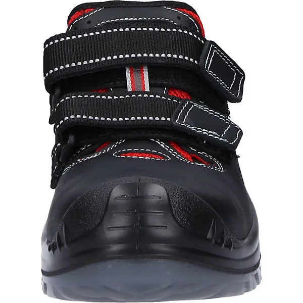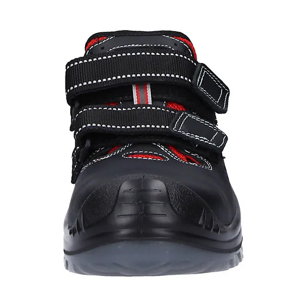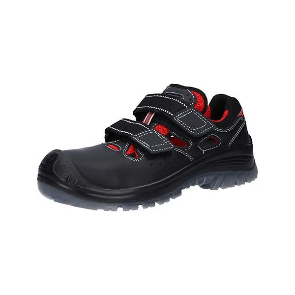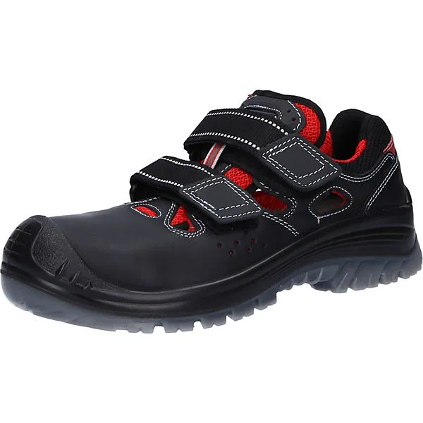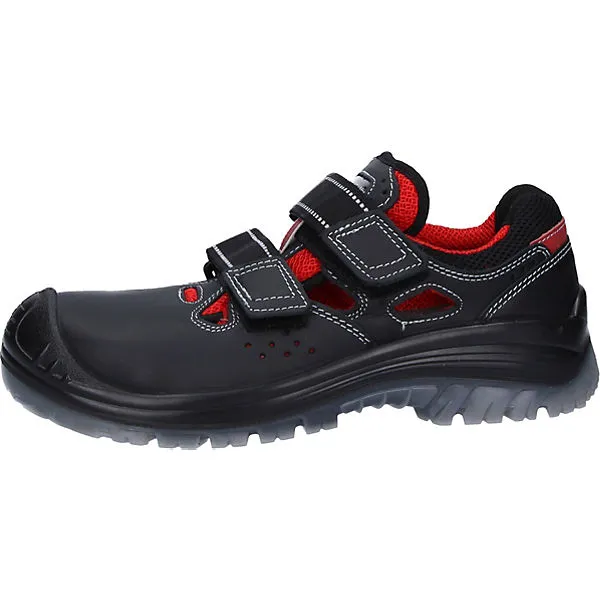 Sicherheitsklasse: EN ISO 20345:2011 S1P SRC, Zehenschutz: Kunststoffkappe, Durchtrittschutz: ENIGMA T-System – Kunststoffzwischensohle von Texon, Obermaterial: Leder, Farbe: schwarz / rot, Innenfutter: Textil, Sohle: PU / PU transparent, bedingt öl-, benzin- und sĂ€urebestĂ€ndig, antistatisch, Shockabsorber im Absatz, Weite: 11, Extras: Klettverschluss