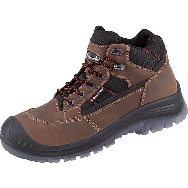 Sicherheitsklasse: EN ISO 20345:2011 S3 SRC, Zehenschutz: Kunststoffkappe, Durchtrittschutz: ENIGMA T-System – Kunststoffzwischensohle von Texon, Obermaterial: Leder / Nylon, Farbe: braun / schwarz, Innenfutter: Textil, Sohle: PU / PU transparent, bedingt öl-, benzin- und säurebeständig, antistatisch, Shockabsorber im Absatz, Weite: 11