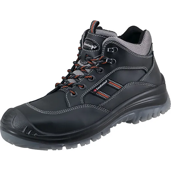 Sicherheitsklasse: EN ISO 20345:2011 S3 SRC, Zehenschutz: Kunststoffkappe, Durchtrittschutz: ENIGMA T-System – Kunststoffzwischensohle von Texon, Obermaterial: Leder / Nylon, Farbe: schwarz, Innenfutter: Textil, Sohle: PU / PU transparent, bedingt öl-, benzin- und sĂ€urebestĂ€ndig, antistatisch, Shockabsorber im Absatz, Weite: 11