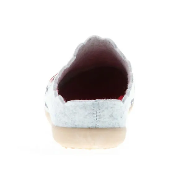Das robuste und zugleich weiche Filz-Material sorgt für einen wohligen Tragekomfort. Die gepolsterte, herausnehmbare Innensohle und die profilierte Laufsohle aus Synthetik machen die Pantoffeln flexibel und angenehm zu tragen. Für einen angenehmen Stand wurde der Hausschuh mit einem kleinen Keilabsatz von 2 cm versehen.