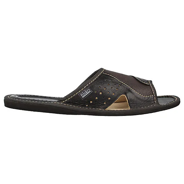 Der Herren Slipper von uns bietet ein angenehmes Tragegefühl und ein atmungsaktives Klima. Dank der Lüftungslöcher im Obermaterial und der Innensohle wird Schweißfüßen vorgebeugt. Der Fersenbereich ist gepolstert, sodass der Fuß beim Gehen und Stehen entlastet wird. Das Rindsleder auf dem Obermaterial ist von guter Qualität und lässt sich leicht mit Wasser abwischen. Die profilierte Gummisohle bietet einen sicheren Halt und schützt vor kleinen scharfen Gegenständen. Der Zehenbereich ist geöffnet, sodass der Fuß genügend Platz hat sich auszubreiten. Mit dem Herren Slipper erhalten Sie ein angenehmes Tragegefühl, ein atmungsaktives Klima und einen sicheren Halt.