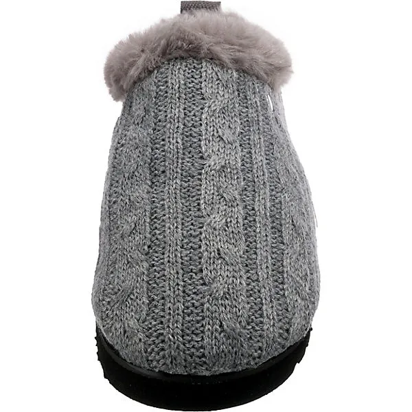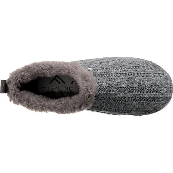 Für ein gemütliches Tragegefühl: Die Pantoffeln der Marke Freyling. Aufgrund des Warmfutters ist dieses Paar optimal für kühles Wetter geschaffen. Das textile Obermaterial ist anschmiegsam und hat ein geringes Gewicht. Der Keilabsatz kombiniert einen modischen Look mit angenehmem Tragekomfort. Dieses Modell kommt ohne Verschluss aus, sodass ganz einfach hineingeschlüpft werden kann.