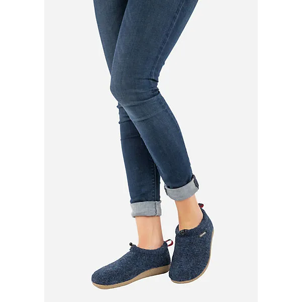 Damenhausschuh von Giesswein aus einer hochwertigen Wolle. Für die Innenausstattung wird eine hochwertige Wolle verwendet. Durch die auswechselbare Decksohle ist es möglich, eigene Einlagen zu verwenden. Geschnitten ist die Form für normal breite Füße (Weite F). Der Absatz ist durchgehend flach ,für gute Bodenhaftung sorgt die abriebfeste und griffige Gummisohle. Die karree-förmige Schuhform hat zwei Vorteile: Sie wirkt sportlich und bietet einen angenehmen Tragecomfort für den Fuß und die Fußzehen. Die Schuhgröße fällt regulär aus.