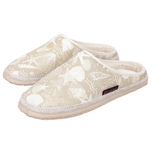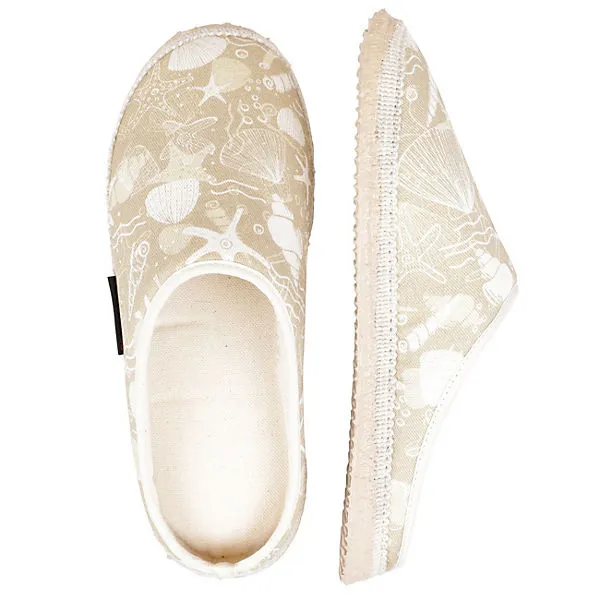 Hol dir den Traum vom Strand nach Hause. Der Baumwollhausschuh Prisdorf fĂŒr Damen ist von SandstrĂ€nden inspiriert. Den sandfarbenen Schuh zieren die verschiedensten Muschel-Aufdrucke. Man spĂŒrt zwar keinen Sand zwischen den Zehen, dennoch werden die FĂŒĂe auch barfuĂ durch den leichten Baumwollstoff verwöhnt, so, dass trotzdem ein Urlaubsfeeling aufkommt. Sowohl im Sommer als auch im Winter bringt dieser Schuh den Traum von Meer und Strand etwas nĂ€her.