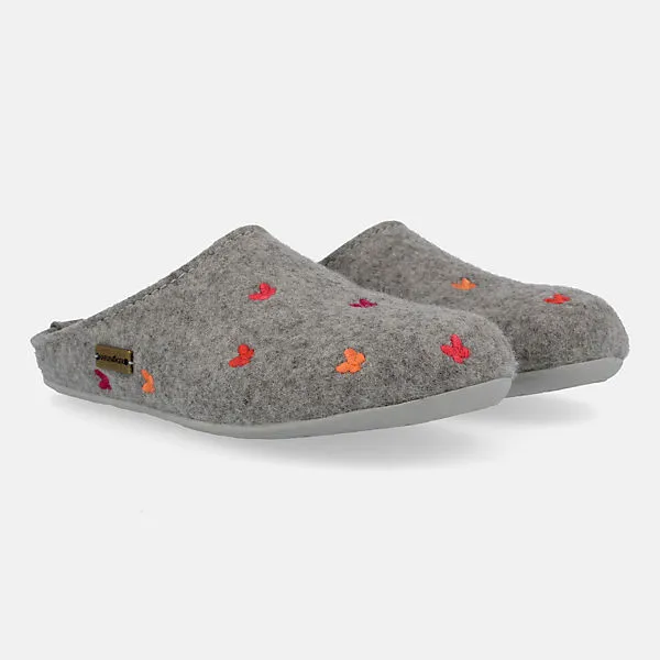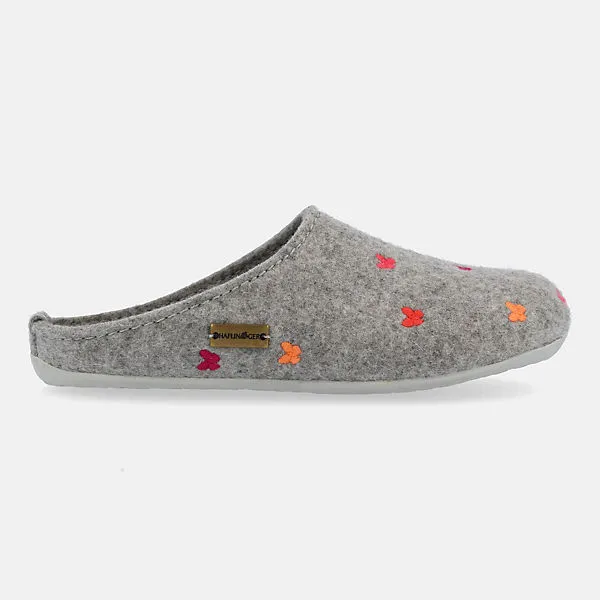 Der Everest Farfalline ist aufgrund der bunt gestickten Schmetterlinge wunderschön anzusehen. Das Obermaterial besteht aus einem einfarbigen reinen Wollfilz, der pefektes Fußklima garantiert. Zudem sorgt das Fußbett in Verbindung mit der stabilen Gummisohle für eine sehr gute Standfestigkeit.