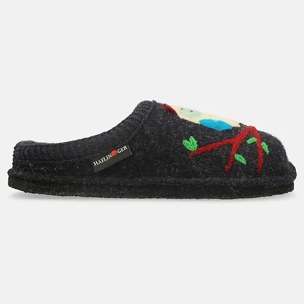 Die Pantoffeln Olivia beschützen Ihre Füße an kalten Tagen und passen sich durch den Wollwalkstoff individuell den Füßen an. Auf die Pantoffeln ist liebevoll ein Eulenmotiv appliziert. Das Obermaterial und die Decksohle aus reiner Schurwolle sorgen für ein perfektes Fußklima, sind atmungsaktiv und Temperatur-ausgleichend. Ihre Füße bleiben in den Pantoffeln warm, fangen jedoch nicht an zu schwitzen. Die 10 mm dicke und latexbeschichtete Filzsohle ist rutschfest sowie feuchtigkeitsabweisend.
