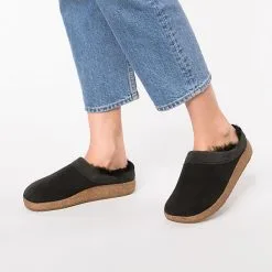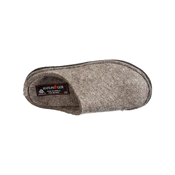 Bequeme Damen Hausschuhe von Haflinger aus einem angenehm weichen Filzmaterial. Innen ist der Schuh mit hochwertigem Filz augestattet. Der Schuh hat eine normale Weite. Der Absatz ist durchgehend flach. Die Laufsohle ist aus Krepp. Die SchuhgröĂe fĂ€llt regulĂ€r aus.