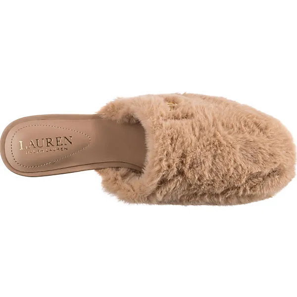 Bequem für daheim: die Pantoffeln der Marke Lauren Ralph Lauren. Das textile Obermaterial unterstreicht das Design des Schuhs. Ein Pluspunkt ist außerdem das anpassungsfähige Polyester-Futter.