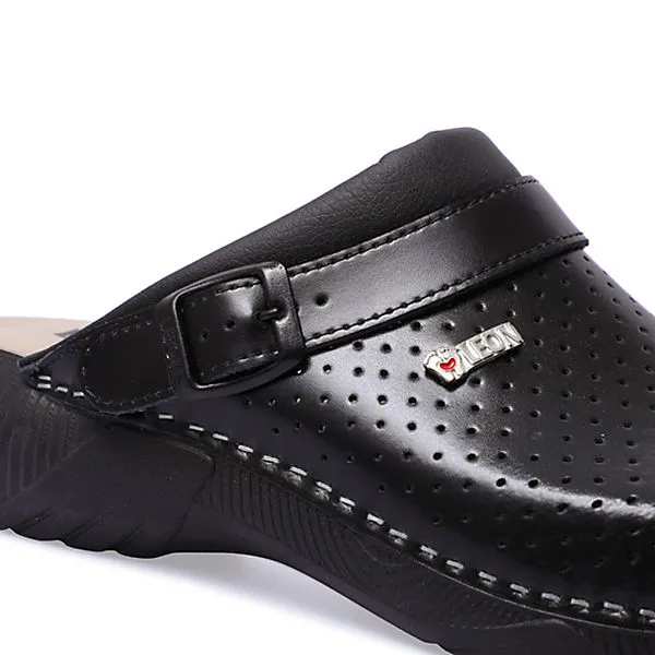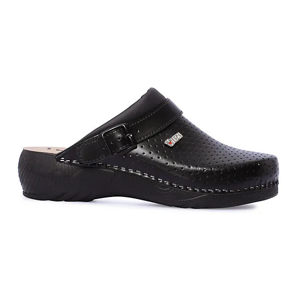 Amadea, die komfortable Pantolette für Sie aus unserer Medicial Serie. Das perforierte Oberteil aus extrem angenehmen Lederobermaterial und Futter sorgt für höchsten Tragekomfort und Atmungsaktivität. Eine zeitlose, schöne Pantolette, sowohl für innen als auch für draußen. Das weich gepolsterte Fußbett in Verbindung mit der langlebigen und dämpfen den PU-Sohle sorgen für den größtmöglichen Tragekomfort. Der mit einer Dornschließe verstellbare Riemen sorgt dafür, dass sich der Schuh an jede Fußform optimal anpassen lässt. Komfort „Made in Europe“