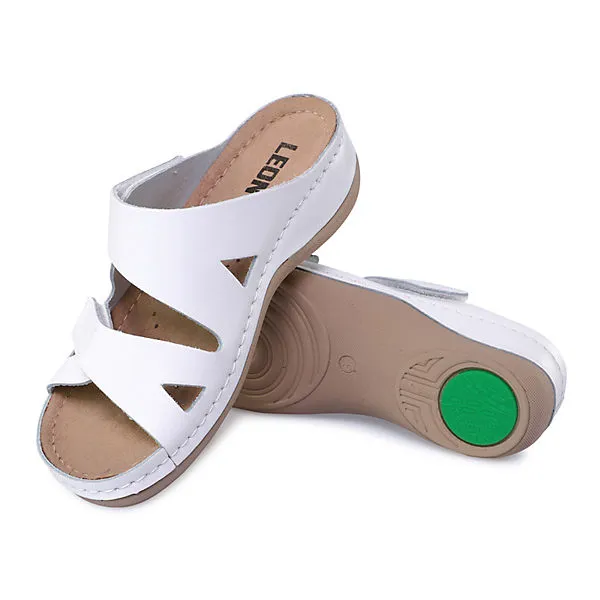 Astrid, die klassische Pantolette fĂŒr Sie. Das modische gestaltete Oberteil aus extrem angenehmen Lederobermaterial und Futter sorgt fĂŒr höchsten Tragekomfort. Eine zeitlose, schöne Pantolette, sowohl fĂŒr innen als auch fĂŒr drauĂen. Das weich gepolsterte FuĂbett in Verbindung mit der langlebigen und dĂ€mpfenden PU-Sohle sorgen fĂŒr den maximalen Tragekomfort. Die verstellbaren KlettverschlĂŒsse sorgen dafĂŒr, dass der Schuh sich an jede FuĂform optimal anpassen lĂ€sst. ZusĂ€tzlich macht die mit Leder bezogene Zwischensohle Astrid zu einem echten Hingucker. Komfort „Made in Europe“