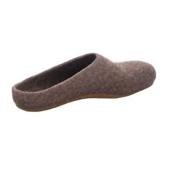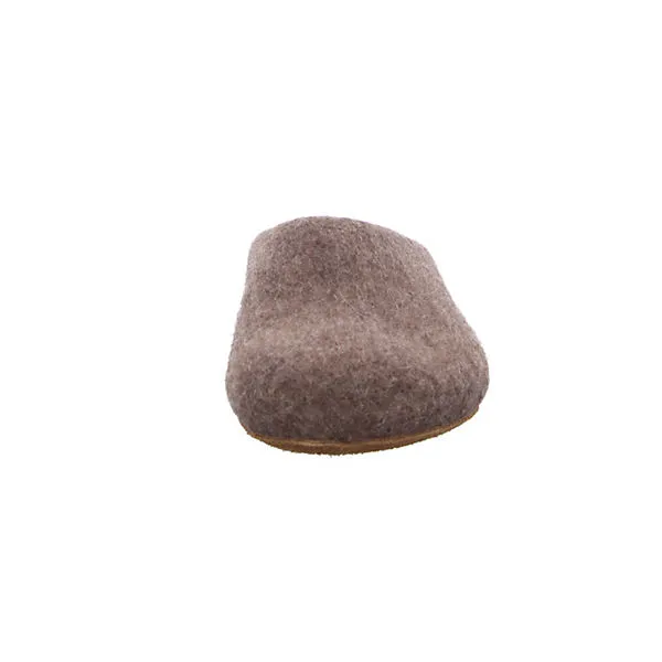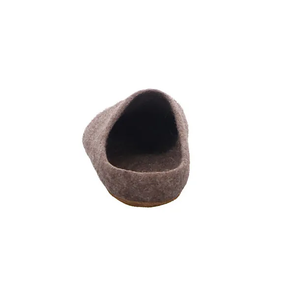 Ein anatomisch geformter Filzhausschuh, gefertigt aus der Wolle vom Tiroler Bergschaf und einer braunen Ledersohle. Die Kreuzung zwischen Tiroler Steinschaf und norditalienischem Bergamasker Schaf fühlt sich im rauen, alpinen Gebirgsklima besonders wohl. Bodenständige Farbmelierungen zeichnen die Wolle aus.