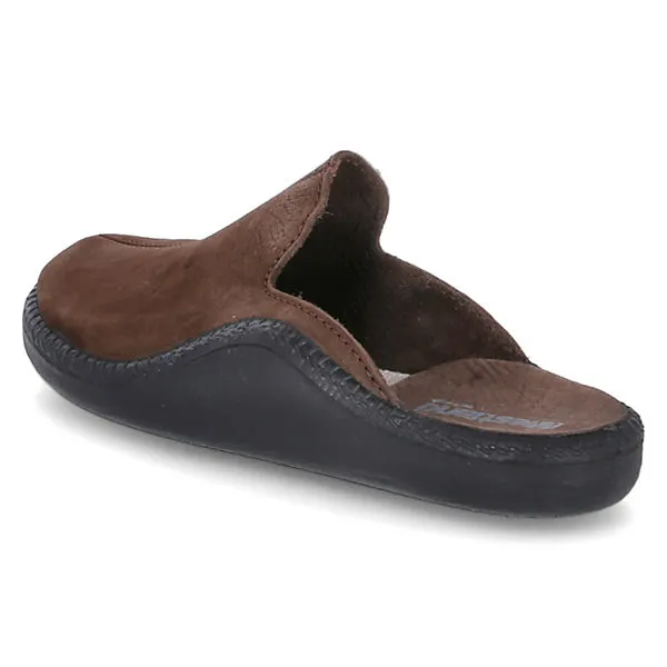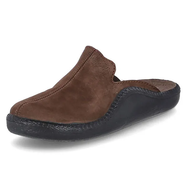Mit den Hausschuhen MONACO 202 bietet Westland Herren klassische Pantoletten aus robustem Rauleder an. Die flexible, rutschhemmende Laufsohle ist seitlich-mittig des Fußes für besseren Halt hochgezogen und bietet auf diversen Untergründen guten Halt. Eine markante Mittelnaht lockert das Design stilsicher auf.