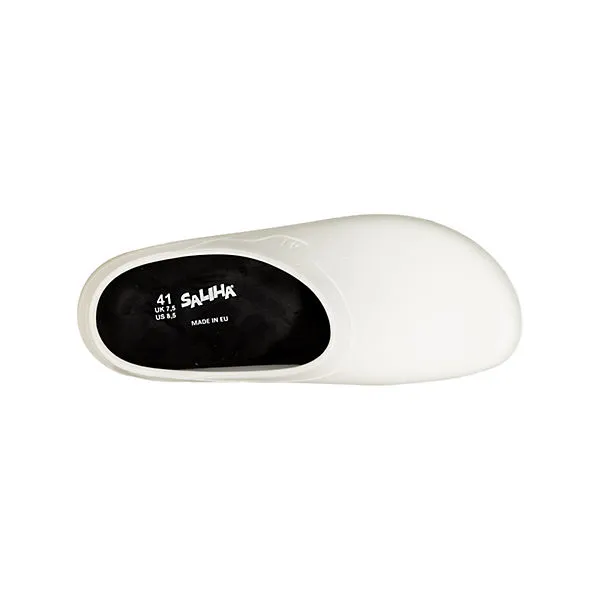 Der SALIHA® Multi Clog ein Clog für alle Fälle, im Beruf sowie in der Freizeit einsetzbar. Die leichte, flexible, wasser- und schmutzabweisenden Clog-Schale aus Polyurethan trotzt jedem Wetter und vielen Situationen im Alltag. Die speziell entwickelte Profilsohle, die nicht nur durch die Rutschhemmung einen sicheren Stand garantiert, sondern aus der sich durch die Gehbewegung automatisch der Schutz löst. Das anatomisch geformte Fußbett aus PU ist äußerst bequem, herausnehmbar und bei 30° C abwaschbar.