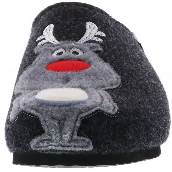 Das Obermaterial wurde aus Naturwollfilz gefertigt und ist angenehm weich. Da das Innenmaterial und die Decksohle ebenfalls aus Filz bestehen sind Deine FĂŒĂe immer angenehm warm und sorgen gleichzeitig fĂŒr einen einmaligen Tragekomfort. Optisch anziehend ist das auf dem Spann gestickte Rentier.