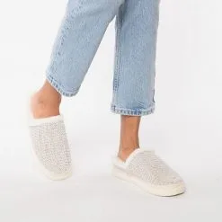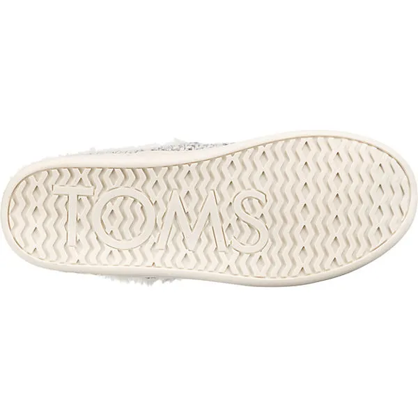 Diese Pantoffeln von TOMS sind komfortable Begleiter für daheim. Das Futter aus Kunstfell sorgt auch bei kaltem Wetter für angenehm warme Füße. Das Schuhpaar kommt ohne jeglichen Verschluss aus, sodass im Handumdrehen hineingeschlüpft werden kann. Um bei Nässe einen hohen Komfort zu bieten, ist das Obermaterial wasserabweisend.