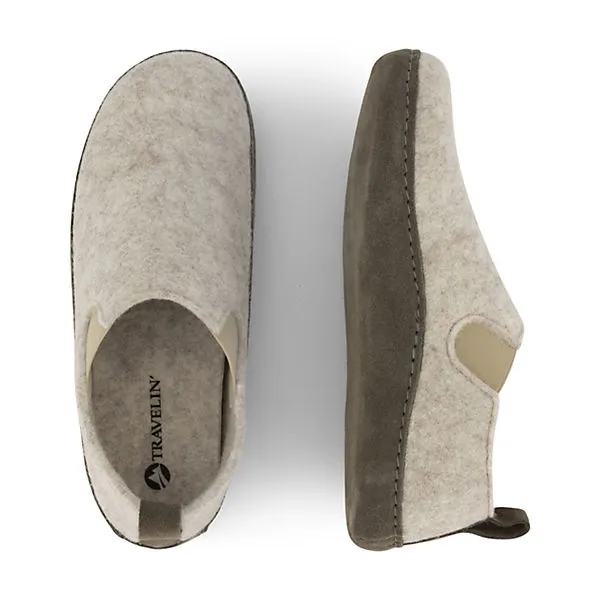 Die In-Home-Pantoffeln der Marke Travelin‘ werden aus hochwertigen Naturprodukten hergestellt. Diese Travelin‘ Hausschuhe umschlieĂen den gesamten FuĂ, wobei der elastische Einsatz ein einfaches Anziehen ermöglicht. Der Hausschuh hat eine Laufsohle aus Wildleder und ist daher nur fĂŒr den Innenbereich geeignet.