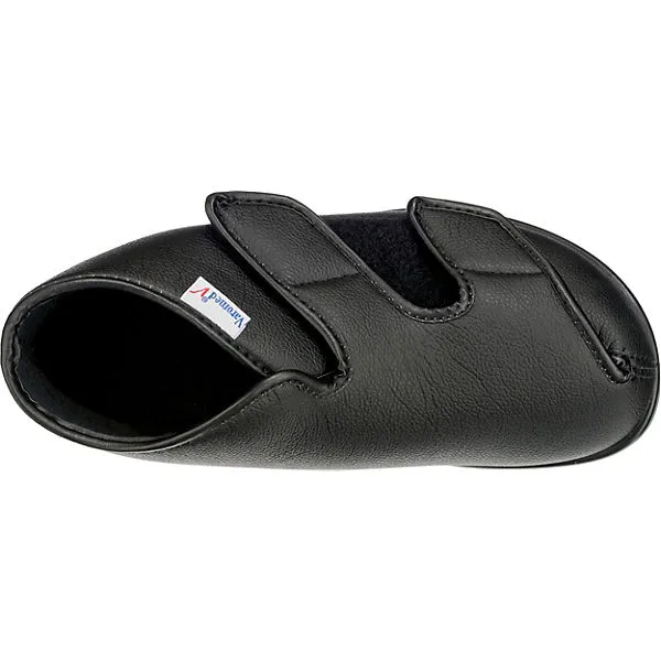 Die VAROMED London Hausschuhe mit starker Überweite sorgen mit ihrer weich gepolsterten, herausnehmbaren Decksohle für hohen Tragekomfort. Die geschlossene Vorderpartie bietet Schutz für die Zehen.
